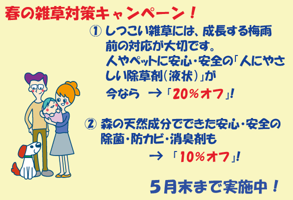 食品のみで作られた、完全無農薬で人やペットに安心・安全な除草剤「人にやさしい除草剤」を始め、植物の抽出液のみで作られた除菌・消臭剤(F-118)や天然の岩塩シリーズなど、みんなにやさしいものが揃っていますので、ゆっくりご覧ください。